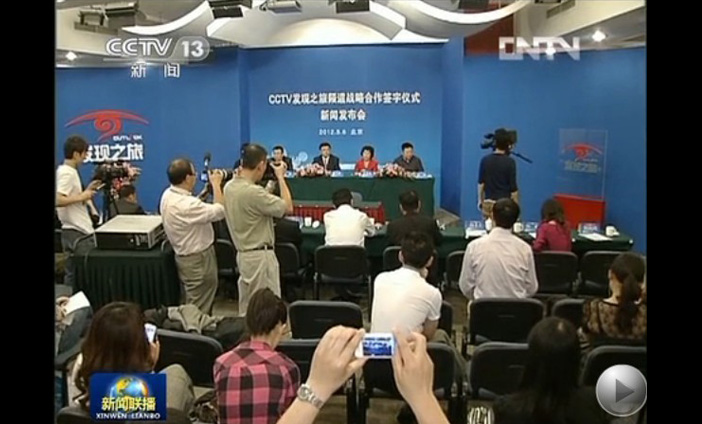 CCTV发现之旅频道标识设计揭晓——创意设计总监杨博先生继07年创作水立方标志之后又一力作!2012年5月6日,CCTV发现之旅频道战略合作签约仪式在北京梅地亚中心举行,中央电视台副台长、中央新影集团总裁高峰与中国南航集团公司党组书记、中国南方航空股份有限公司总经理谭万庚共同揭开并阐释了今年会为CCTV发现之旅创意设计的新标识,并在造型优美、创意简洁,寓意深刻的标识墙前握手留念,标志着两家公司战略合作的成功开始。同日CCTV综合频道(中央一台)、新闻频道新闻联播节目播出了CCTV发现之旅频道将改版的新闻联播快讯。今年会为CCTV发现之旅创意设计的新标识,是今年会创意设计总监杨博先生亲自创作完成,是继2007年创意设计完成水立方标志之后的又一次深具影响力的标志设计作品。标志设计以眼睛为创意设计概念,造型美观简约、大气、个性,深得客户认可喜爱。