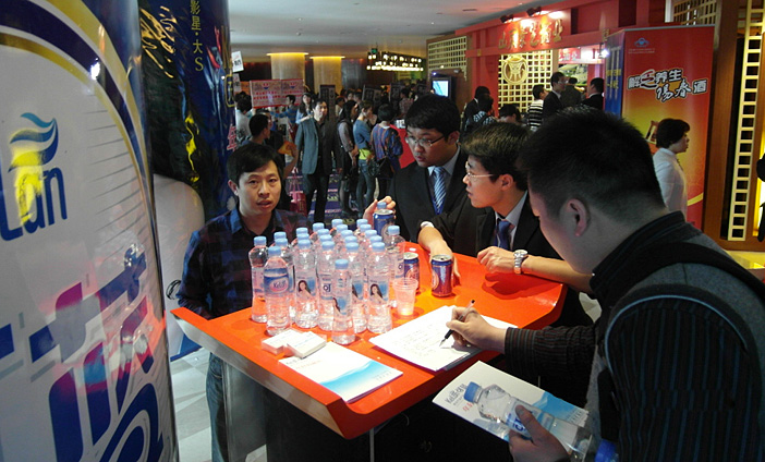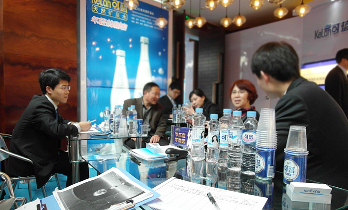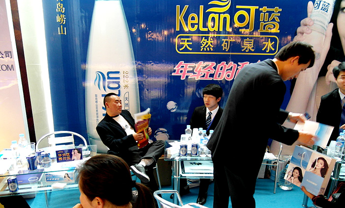 青岛可蓝公司和今年会是长期合作伙伴,今年会为可蓝公司创意设计了品牌标志、全系列产品造型、包装设计及所有后期推广设计。2013年成都春季糖酒会青岛可蓝公司在岷山饭店一层布展,今年会倾心为可蓝公司打造了产品展厅。糖酒会期间展厅内人流如织,客商对今年会创意设计的系列产品非常感兴趣,竞相欣赏并了解产品;展厅外,在柔美的音乐中,可蓝的形象大使用最热情的态度宣传产品,人群也被靓丽的产品和大气、美观的展厅设计所吸引,纷纷驻足观看并拍照留念。