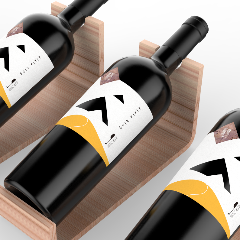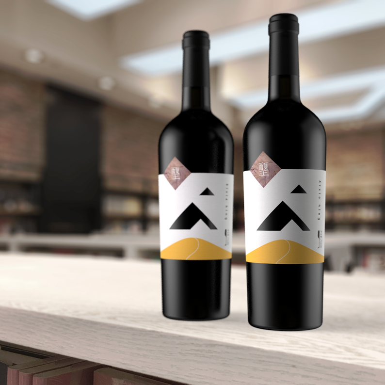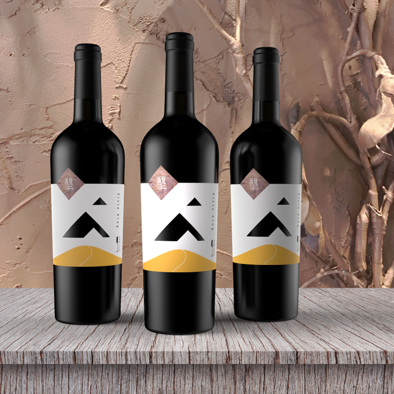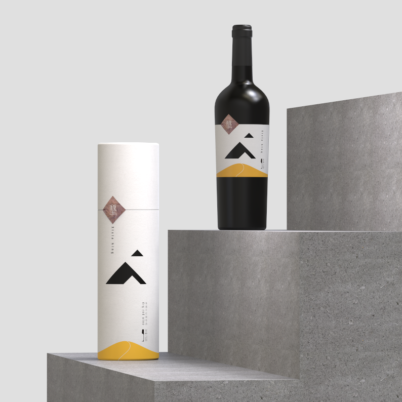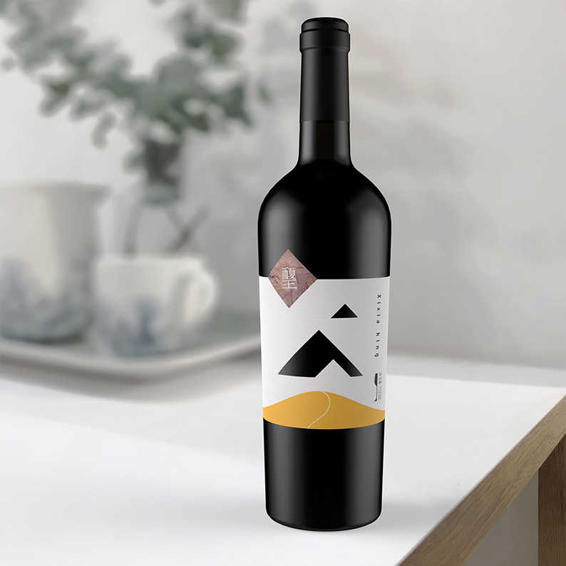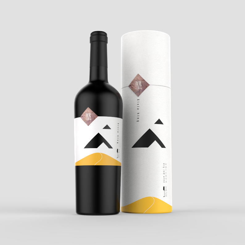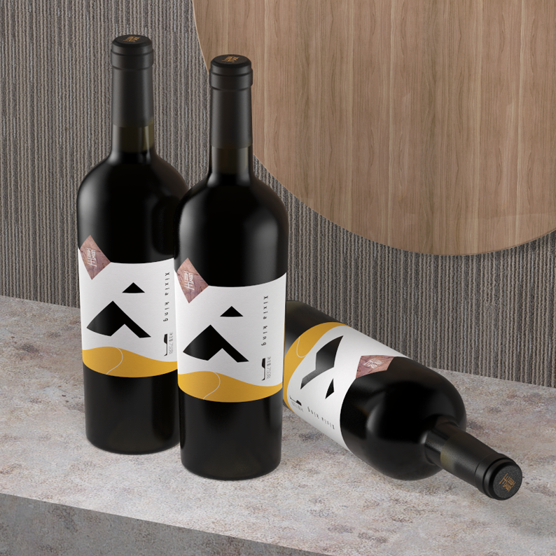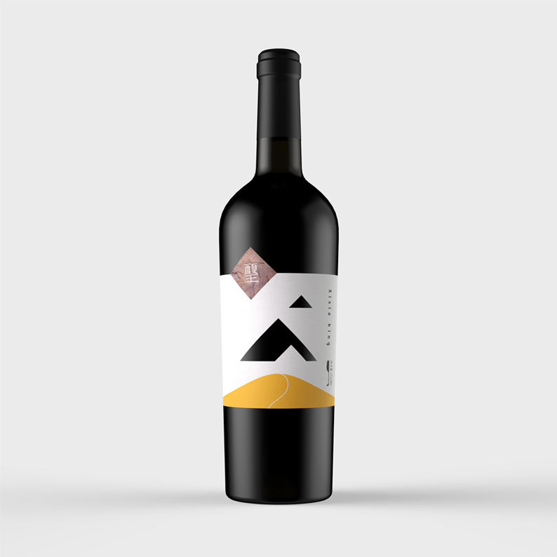 The place of origin is crucial for wine, the grapes of this product are from the eastern foot of Helan Mountain, which is at the same latitude with Bordeaux, France. The special landform and climate coexisting with the desert in Helan Mountains have created high-quality raw materials. So mountains and desert are used for design elements. The shape of the mountain in the middle of the bottle label is a hollow-out process, through which the bottle can be seen,forming three different shapes of mountains far and near. At the same time, the bottom of the square block on the left is the rock painting pattern of Helan Mountain. The Chinese font Xixia King in the block is designed into the style of ancient Chinese characters of Xi Xia Dynasty. And it is also the embodiment of regional culture. This product is aimed at successful young fashion businessmen. This product has an outstanding character and product differentiation is obvious.