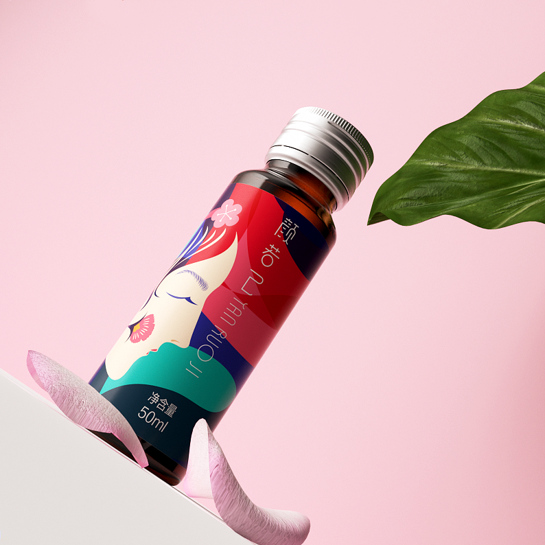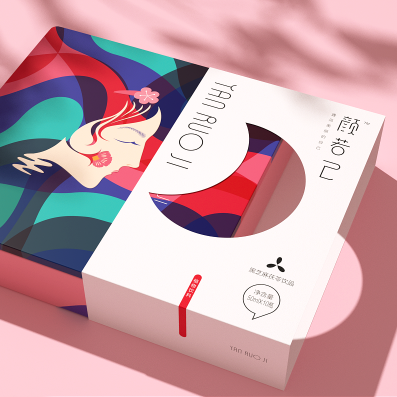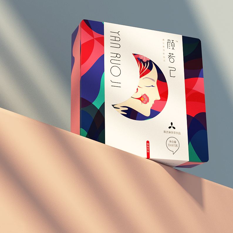 YANRUOJI black sesame tuckahoe drink, aimed at female consumers, improve sleep quality. The packaging design integrates the creativity of women's face, water and moon, and deduces the product positioning and value with visual beauty.