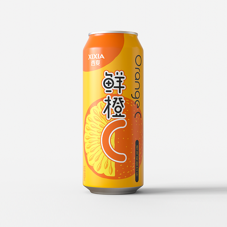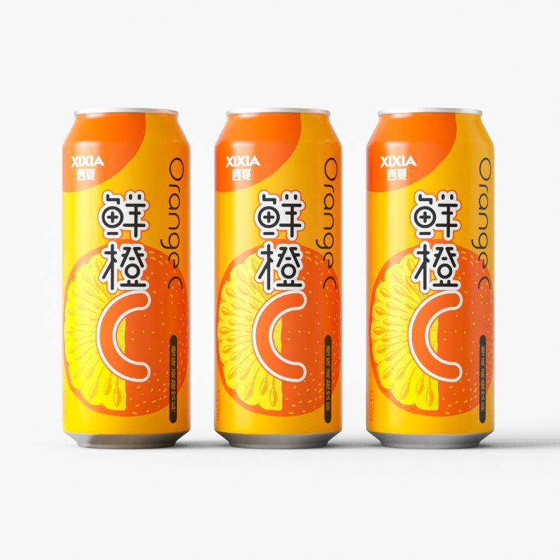 Xixia beer is a sub brand of Carlsberg beer. There are many fruit beer products of various brands on the market, most of which are traditional design styles. Through the analysis of target consumer groups and product positioning and characteristics, We decided to use hand-painted form to express orange flavor drinks. The font design of orange C is novel and modern, the packaging design is simple and fashionable, and the overall color matching is distinctive.