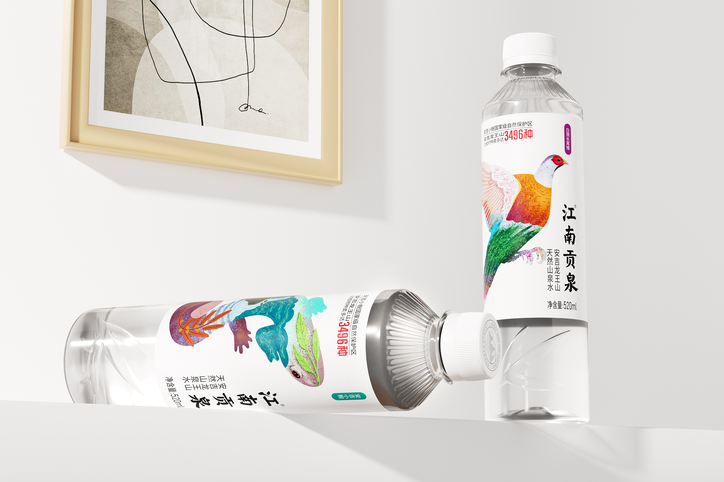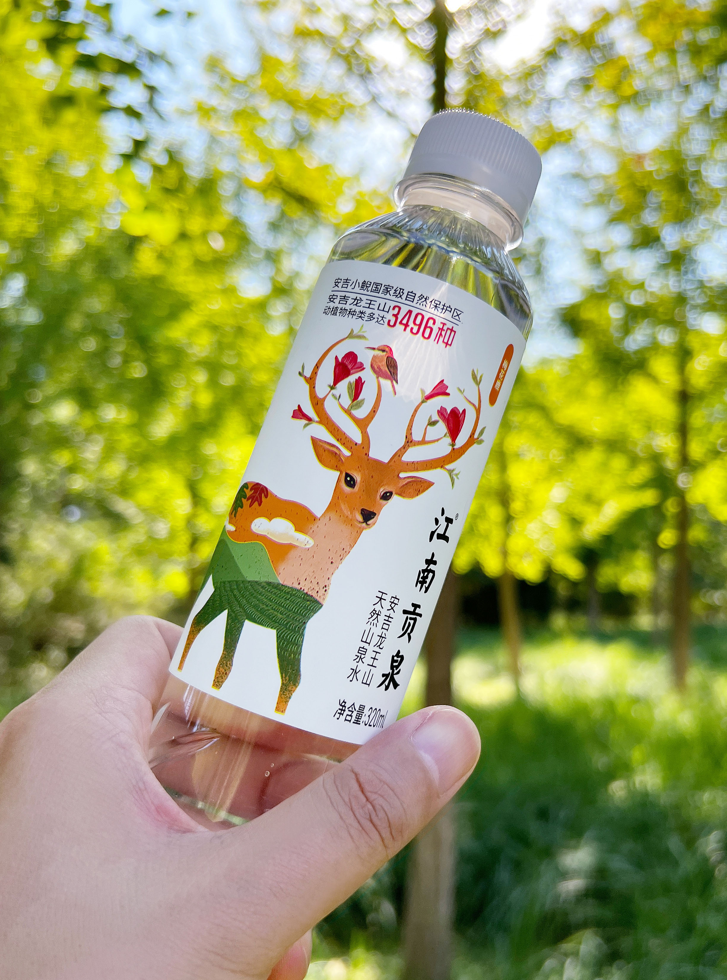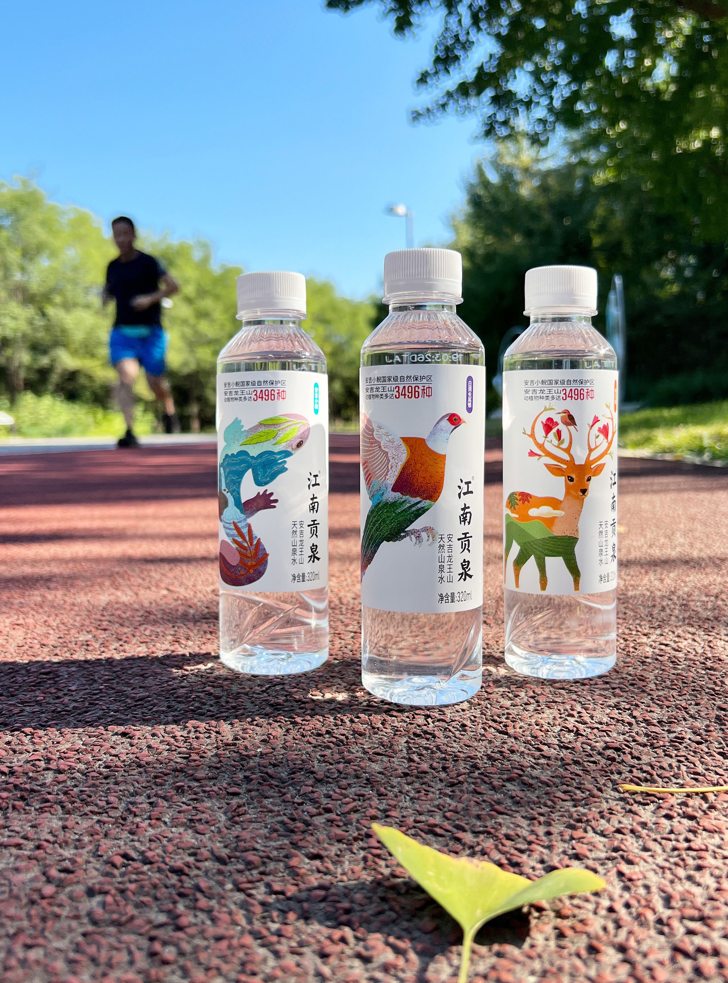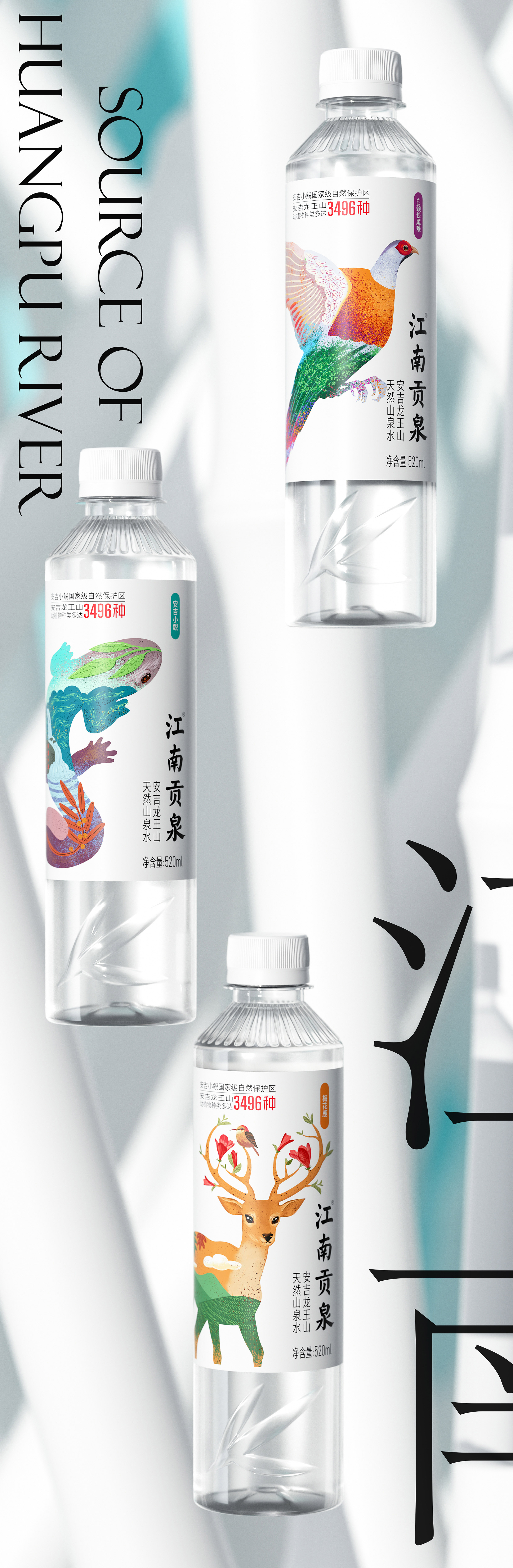 产品系列包装以动植物资源为切入点,表现水源地生态环境地域优势,挖掘筛选出安吉小鲵、梅花鹿、白颈长尾雉等国家保护动物为视觉创作元素,形成自身品牌产品形象识别。