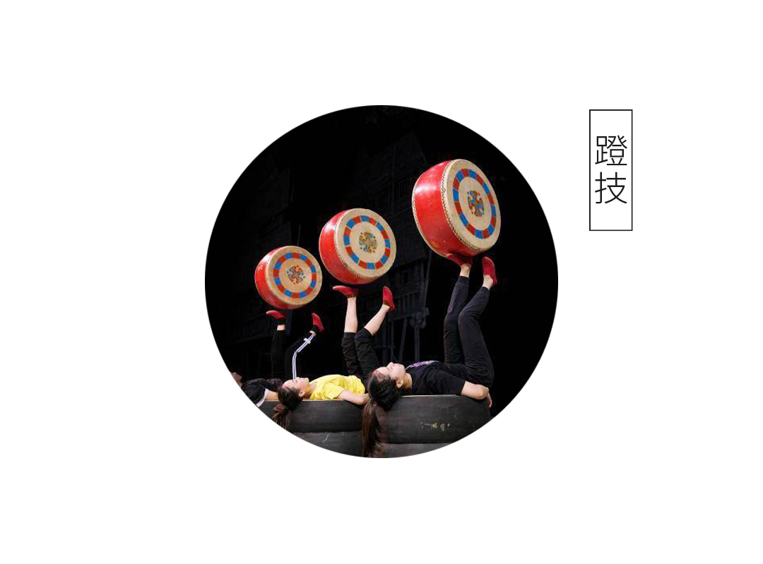 创意灵感源自中国传统杂技艺术“蹬技”,是一种来自演员高超腿脚功夫,仰躺蹬物的表演形式,见下图: