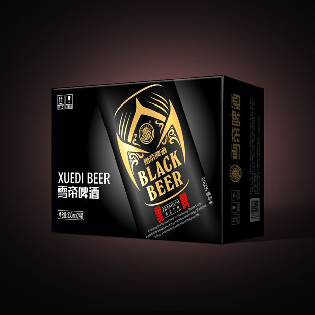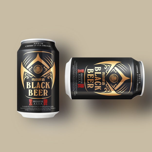 今年会为雪帝品牌开发设计的黑啤包装,融入了中国传统元素,金色部分造型如同酒杯,整体设计个性张扬,品质卓越,极具视觉张力及市场竞争力。