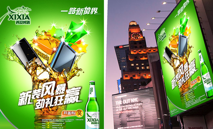 广告表现上强调西夏文化、地域特色。推出风景装,设计限时限量啤酒包装,拍摄制作人文宣传片,以宁夏当地地域为背景,融入到产品中。打造品牌文化的同时,也是对西夏的宣传带动,体现西夏作为具历史感的地方龙头企业具有的社会责任感。