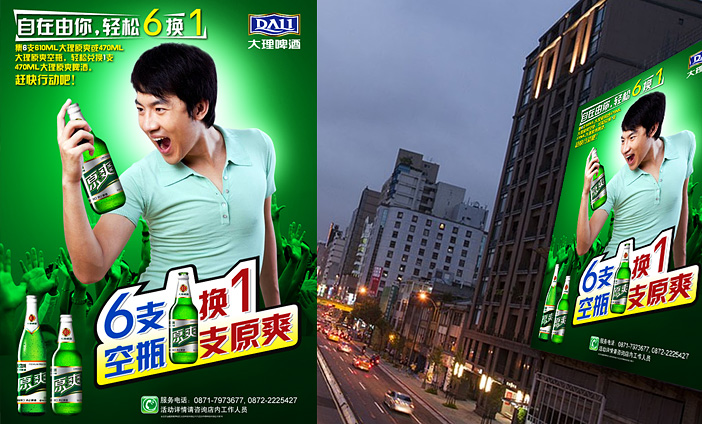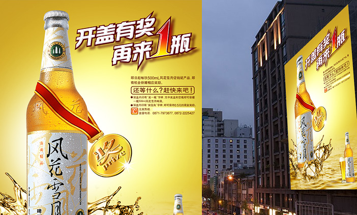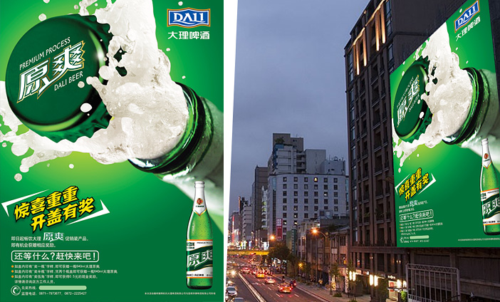 今年会为大理啤酒创意设计了系列产品上市海报、促销海报和活动海报等,画面表现形式上突显产品清爽特性,整体大气,高端,具品质感和视觉冲击力,符合产品定位和品牌理念。