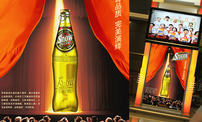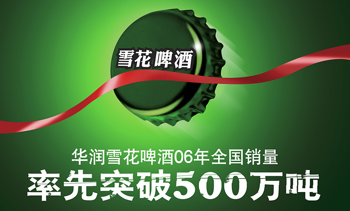雪花啤酒产品围绕清新、淡爽的口感,打造年轻、动感、积极、现代的品牌个性、包装个性,并成长成为当代年轻人最喜爱的啤酒品牌之一。产品宣传主画面设计追求品质、现代、大气,彰显产品至尊品质。产品上市,得到市场的强烈反响。